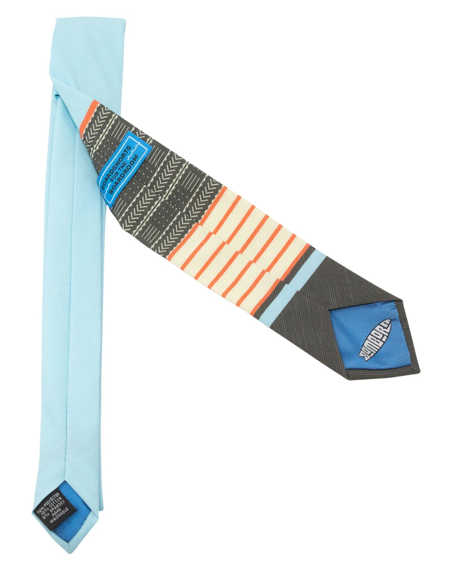 They are hand-sewn with premium quality material, fully lined so they tie a sturdy knot, and finished with Bombora-branded tipping, for that extra shot of personality.