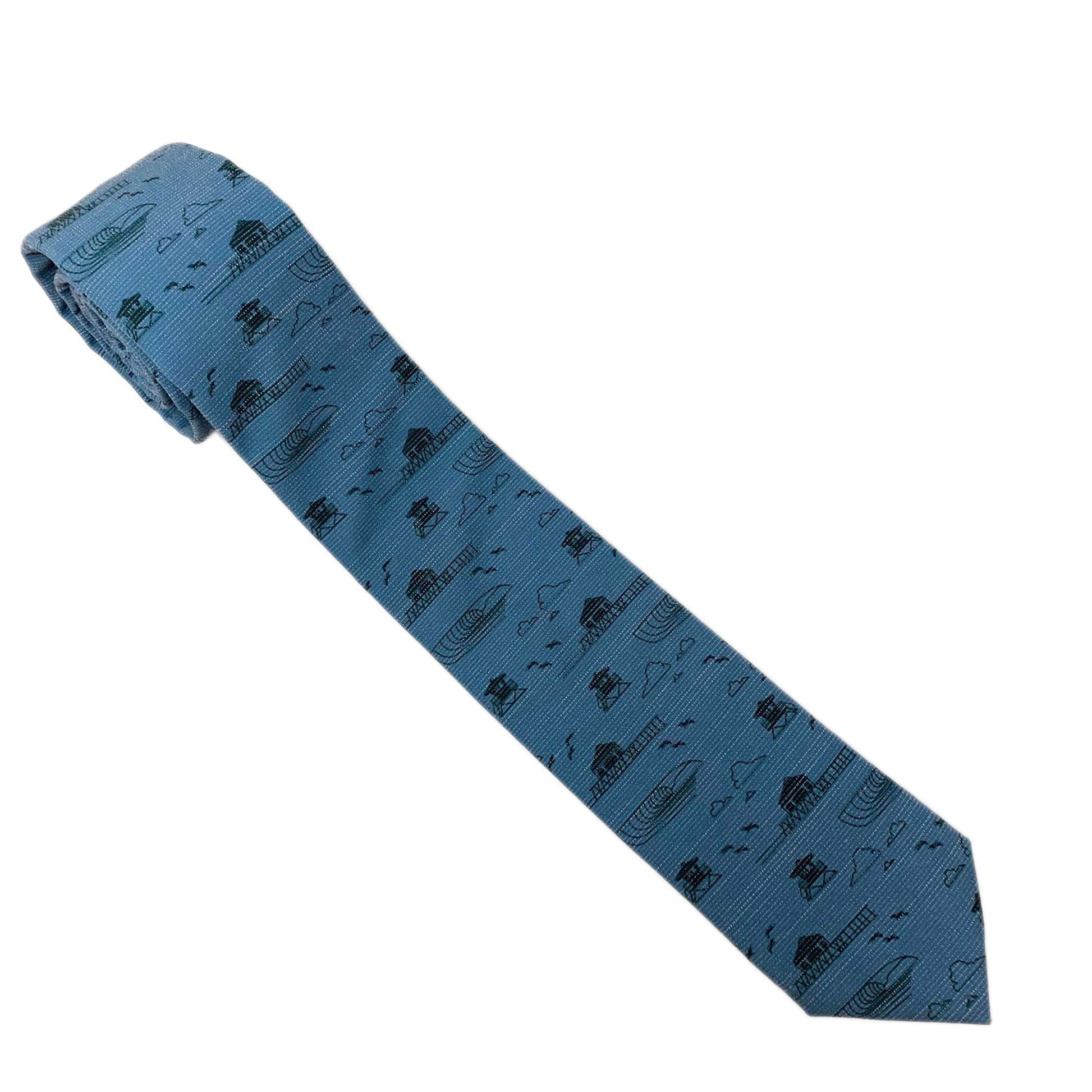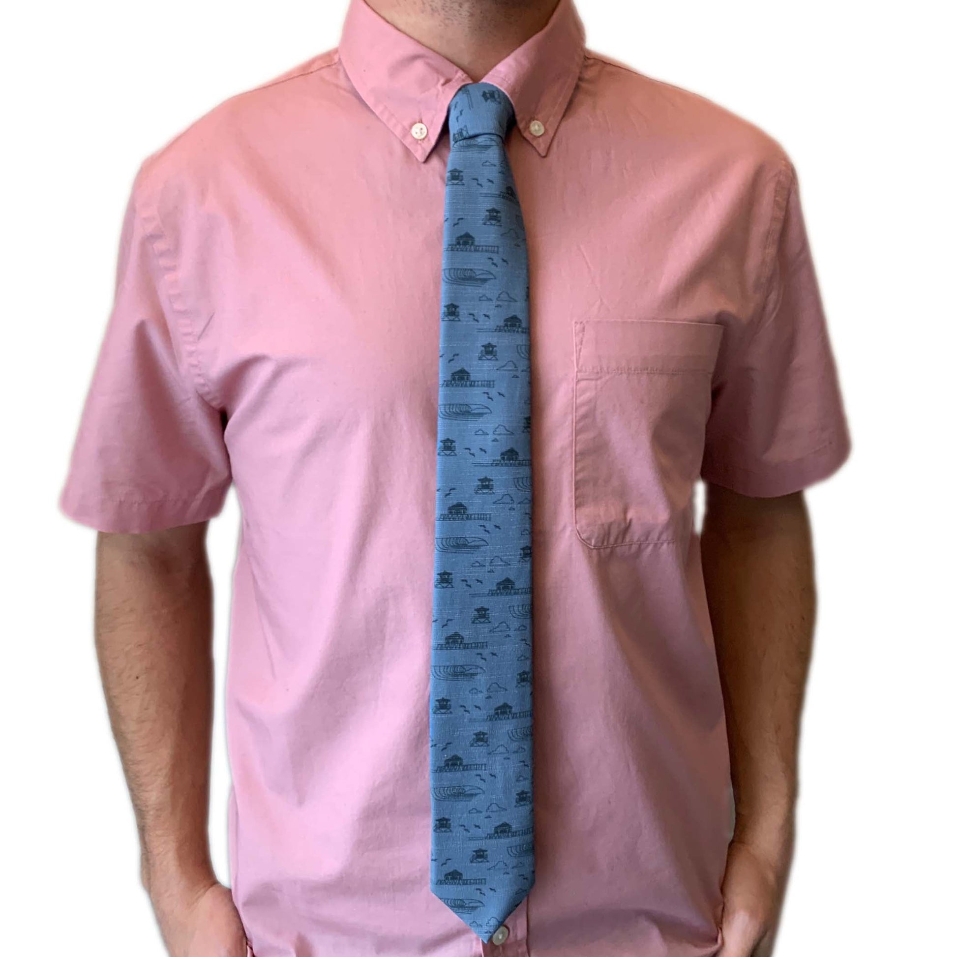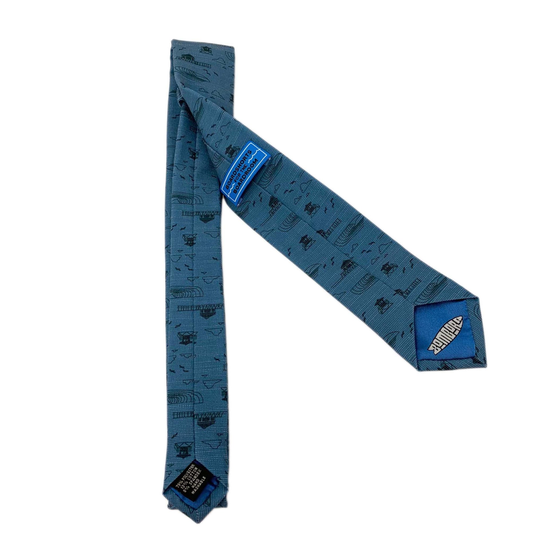 Necktie made from Boardshorts | Men's fun necktie | Blue tie with Huntington Beach icons